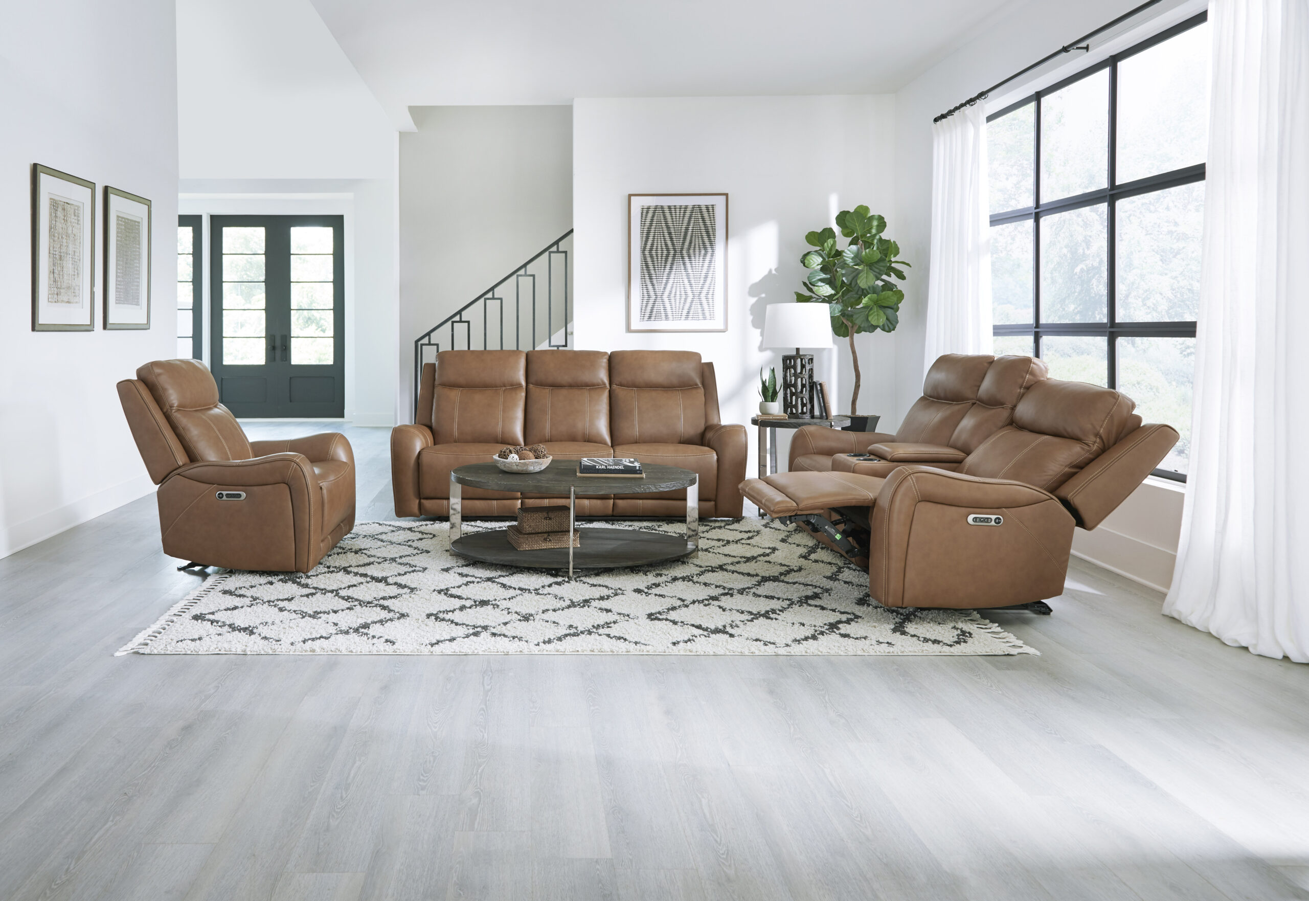 Covered in rich Butternut leather, the Gordon Power Sofa offers the ultra comfortable feel of classic motion upholstery with updated modern touches. Bold padded contoured arms add an element of softness while the contrasting decorative stitching adds to the visual appeal. Looking for creature comforts? The easy-to-use switch includes USB charging for all your devices, and the independently operating power headrest ensures that you'll have proper neck support no matter how you choose to relax.